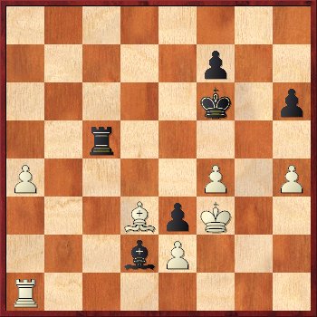 31.צבח1 ח5! 32.מהד1 ב5 33.מו1? ה4 34.ר:ה4 ב4 35.ג:ב4 צ:ב4 36.צ:ח5? צב2! 37.רג2 ר:ג4+ 38.מז1 צ:ג2! הלבן נכנע. הכאת הצריח גוררת מט בשניים.