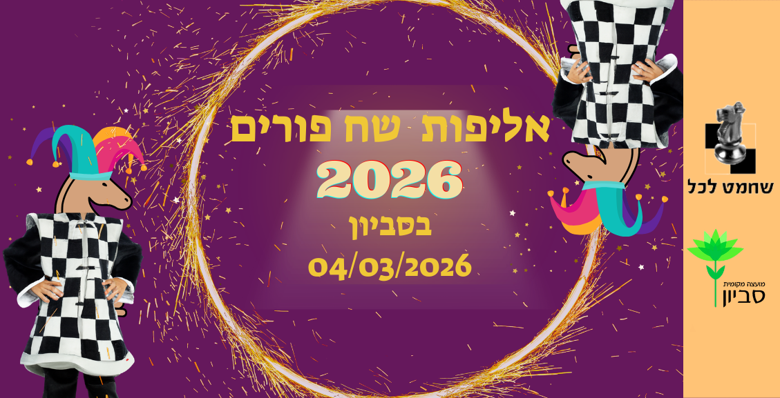 פרסי מצטיינים: עד מד כושר 2000- 200₪,עד 1800 -ערכת שחמט יוקרתית.