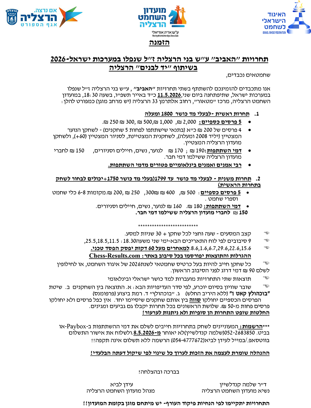 תחרויות האביב ע"ש בני הרצליה שנפלו במערכות ישראל