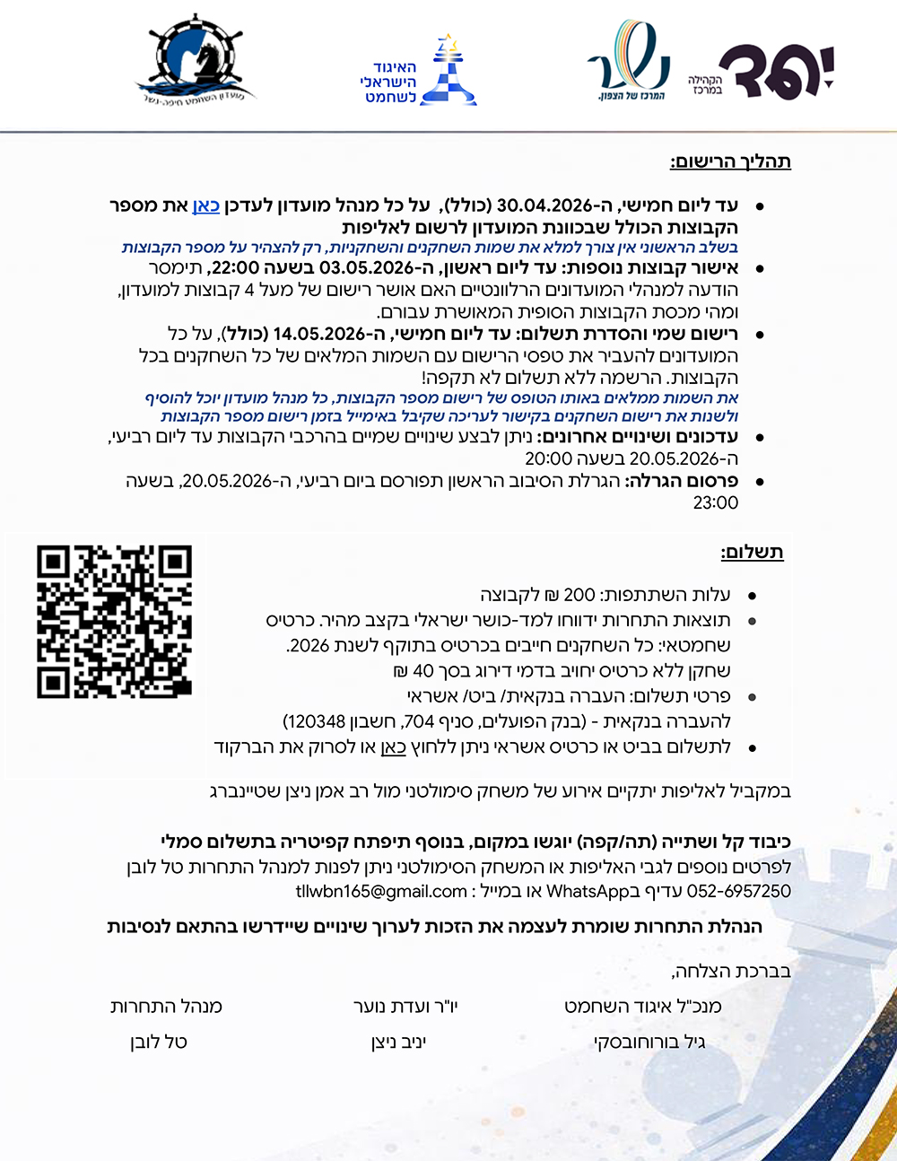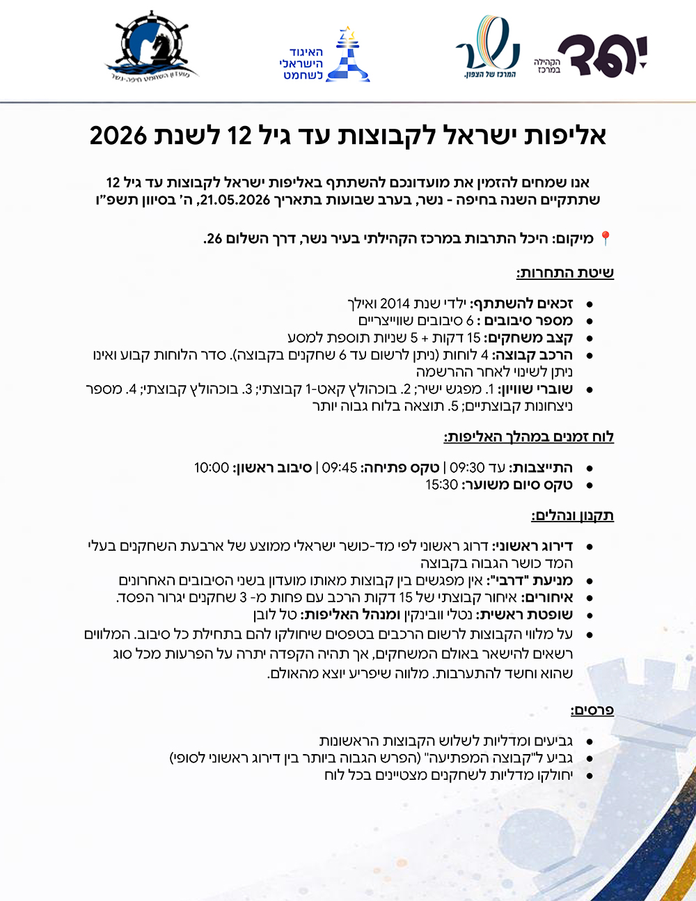 הזמנה לאליפות ישראל לקבוצות עד גיל 12 לשנת 2026