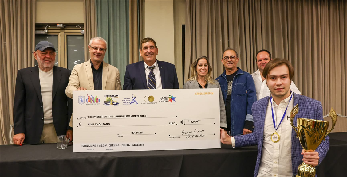 אליפות השחמט בירושלים הוכרעה: אלו הזוכים שיקבלו את הפרס היוקרתי ארסני נסטרוב נציג פיד"ה ויבגני אלכסייב ממועדון אשדוד הוכתרו כאלופי ירושלים הפתוחה, וזכו בכרטיס לאליפות המאסטר בשבוע הבא עם בכירי השחמט העולמי - בתחרות היוקרתית שתיערך במוזיאון הסובלנות בירושלים.